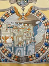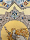 Thème : Saint Georges écrasant le dragon ... Prince de la Cappadoce, Georges a été honoré par deux grandes nations : les grecs qui l'ont proclamé mégalomartyr et les anglais qui l'ont choisi comme leur saint patron. Inspiré des icônes des 15ème et 16ème siècles, le thème de ce carré présente l'action d'un héros chevaleresque, engagé à défendre les faibles.