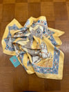 Couleurs : jaune or, jaune citron, orange, caramel, blanc, bleu, gris (les photos ne rendent pas justice à l'éclat de ce carré!)